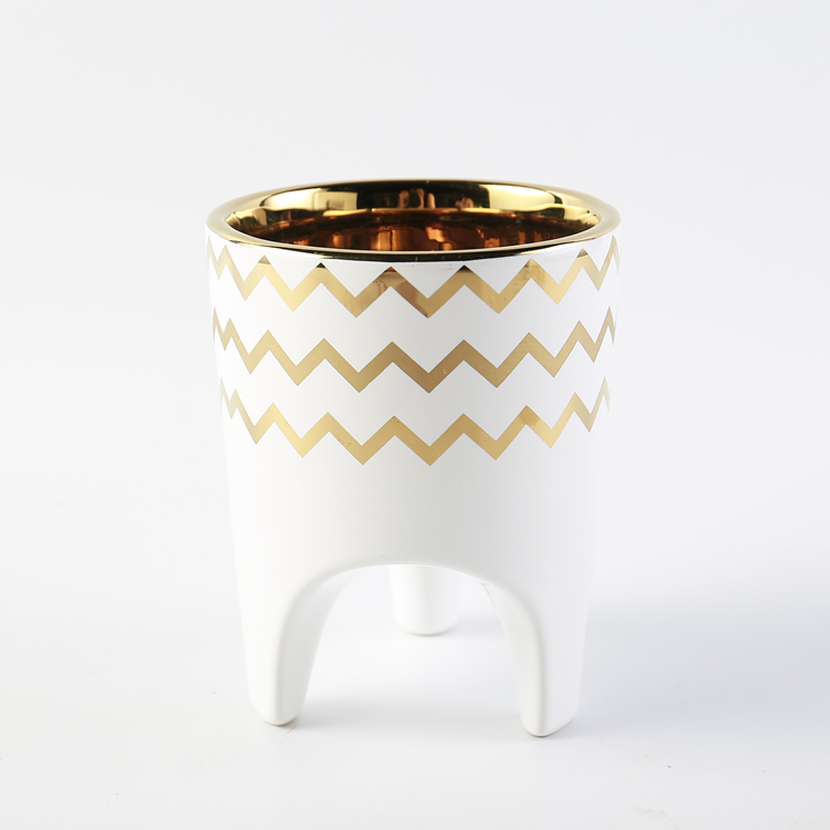 Amazon Hot Sale White Small Flowerpot Gold