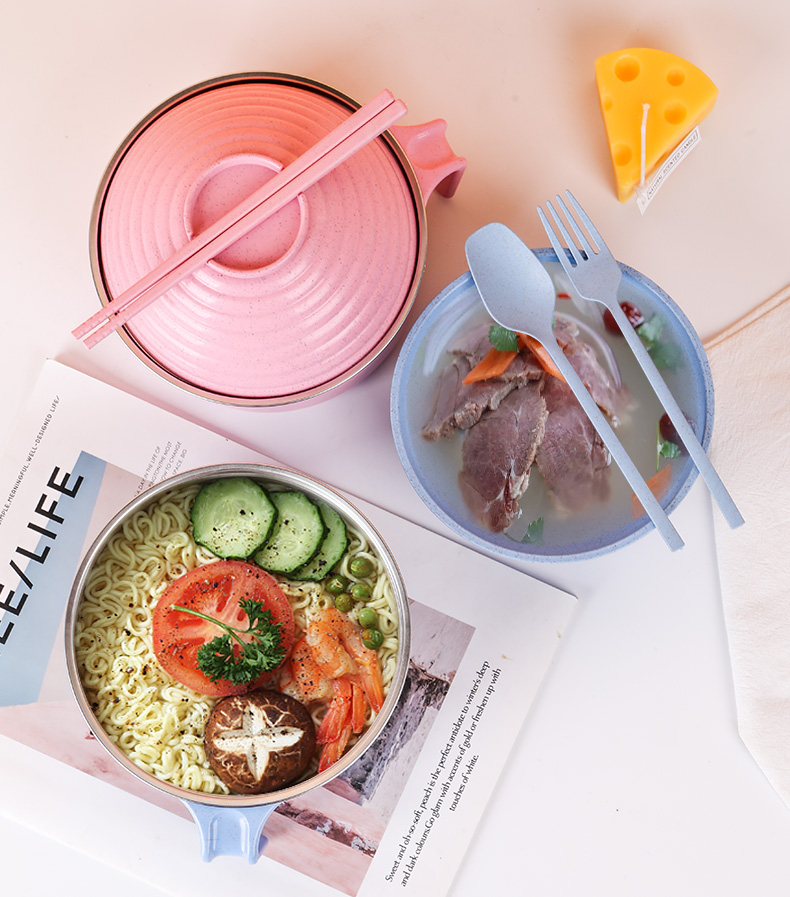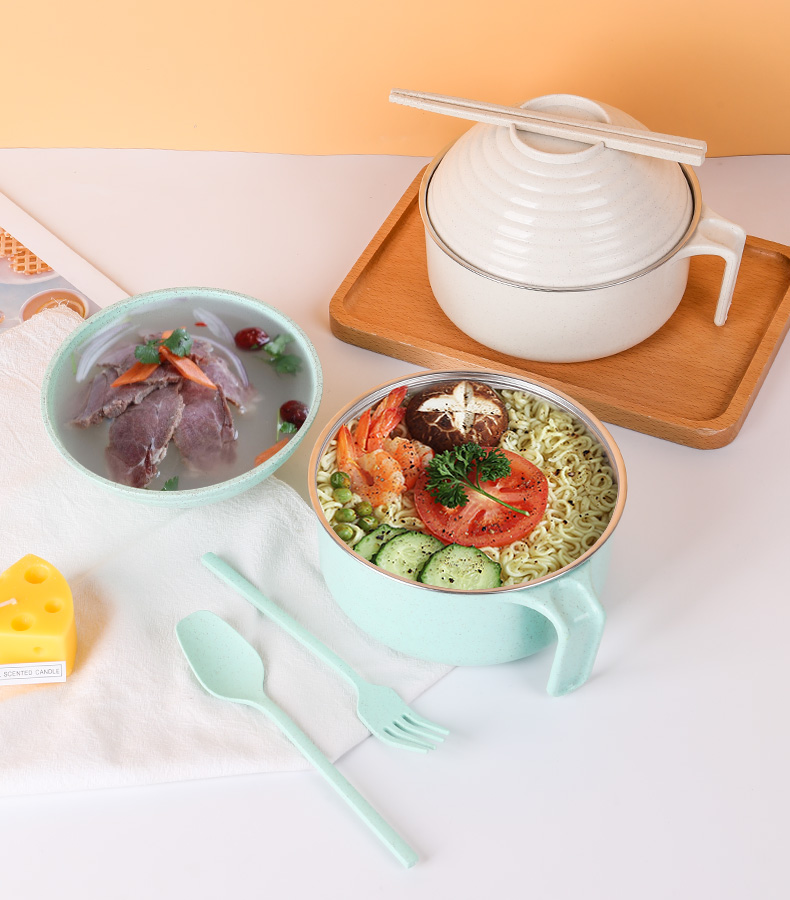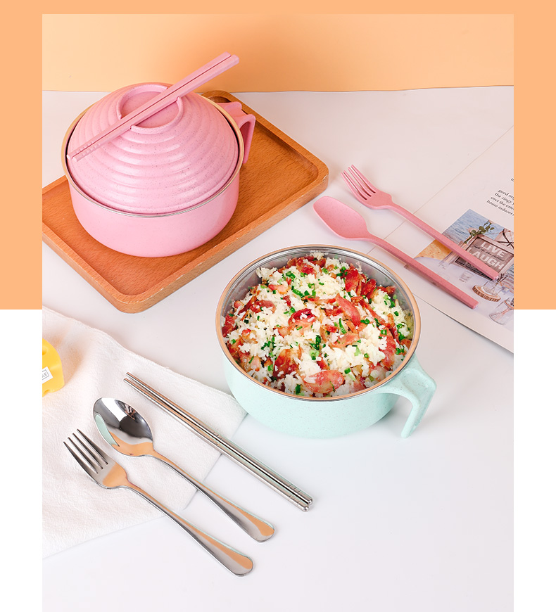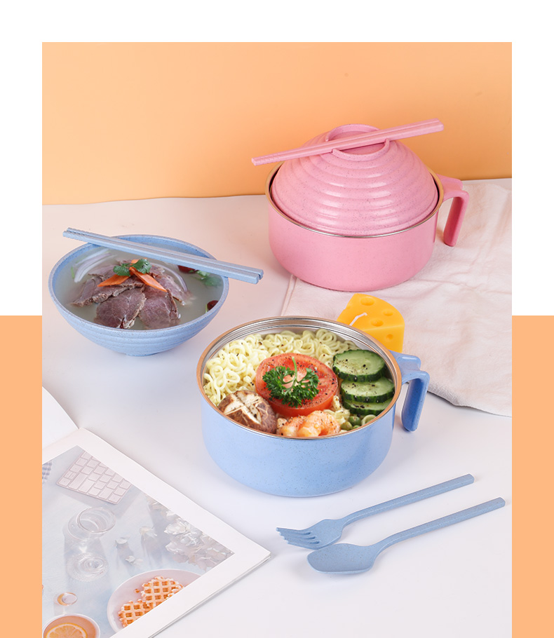 noodle bowl with lid PP wheat 304 stainless steel kitchen accessories Bowls