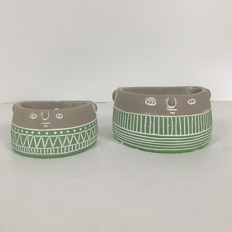 | Description | Face shape cement flower pot |
