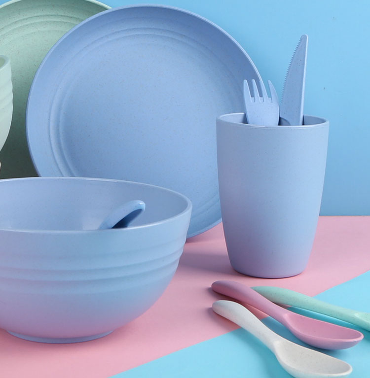 cups spoons forks chopsticks cutlery cutlery set wheat straw cutlery set plate dish