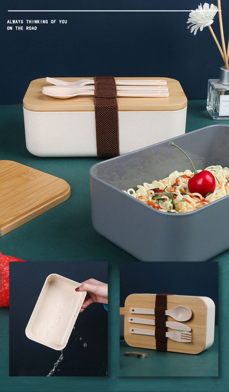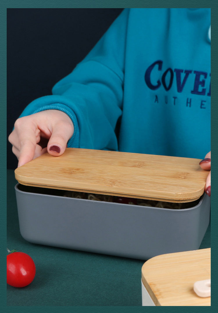 Wooden feel plastic lunch box ins with